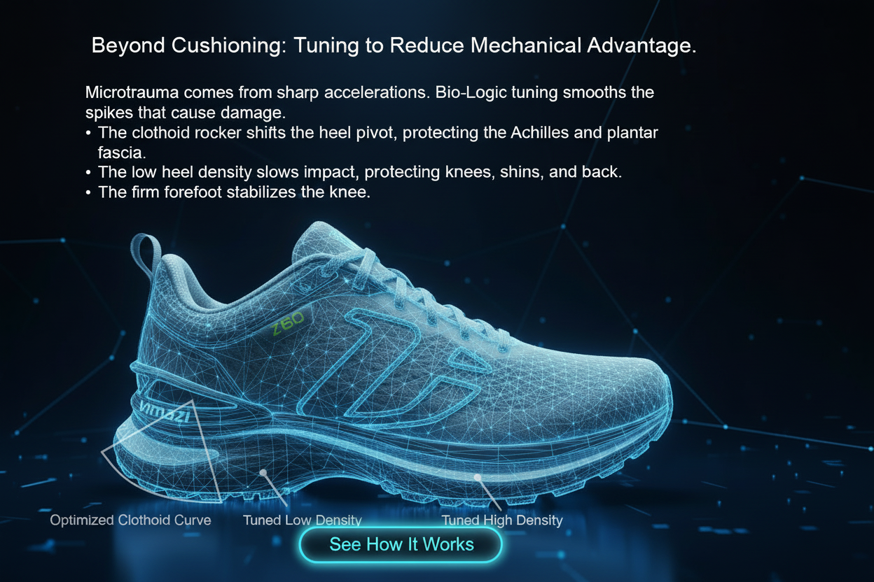 At Vimazi, we are driven by a singular conviction: getting it right is the right thing to do. We are not a traditional shoe company; we are a physical therapy technology born from a deep, scientific understanding of human motion and the physical forces that cause joint microtrauma. By engineering the crucial interface between your body and the ground, our clinically prescribed footwear actively manages destructive forces before they can travel up your kinetic chain. Partnering exclusively with healthcare providers, we deliver precision-tuned, active therapy directly into your everyday routine—improving lives step by step.